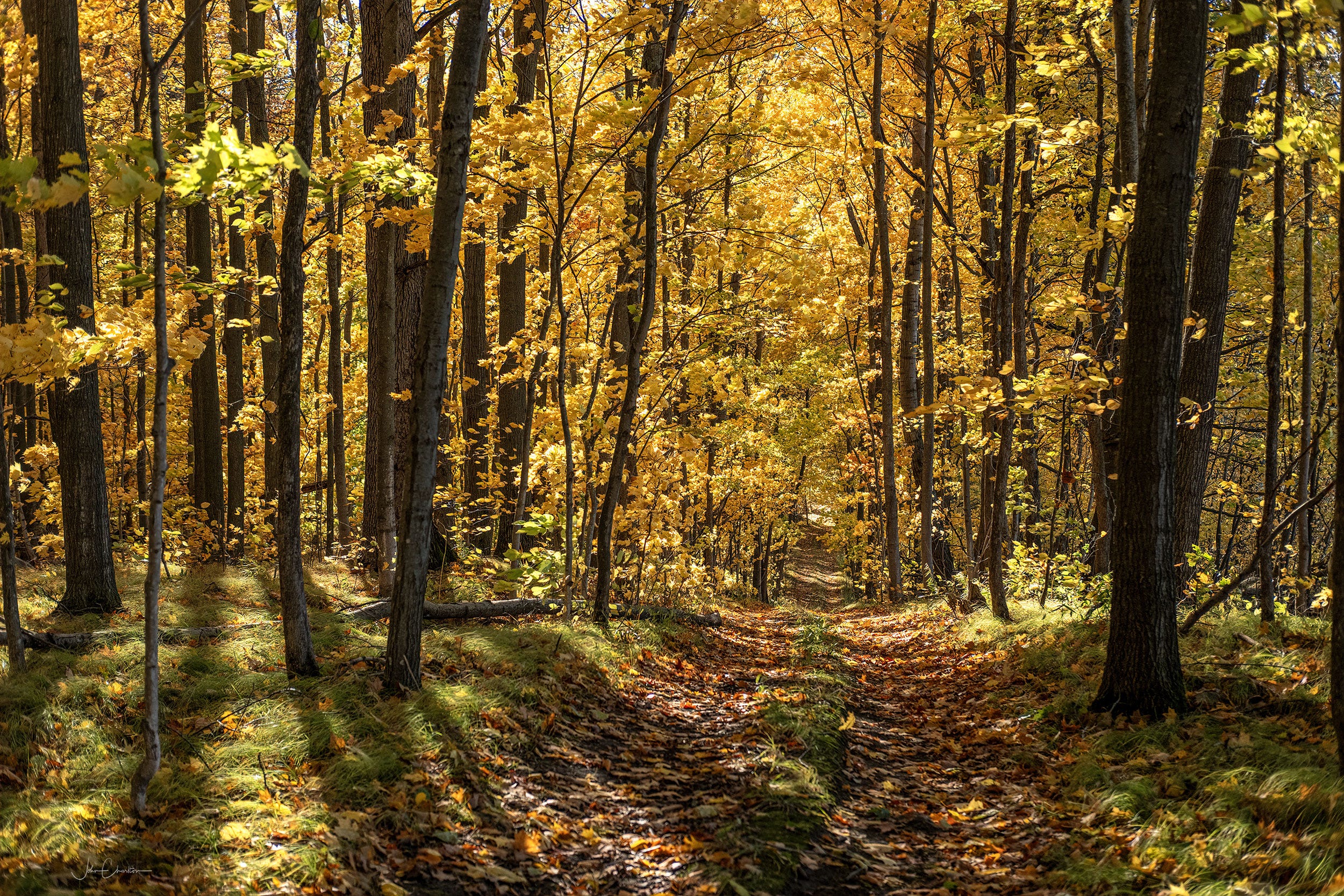 I was happy to have Carol as my companion on the first of these autumn adventures from the final weekend of September. Having seen local colours just starting to change, we headed north from Havelock up County Road 46 to see if we could find more. Within 50 meters of 46 reaching 504, a sign points to The Gut Conservation Area six kilometers east along Lasswade Rd. An intriguing name and so we turned off to check it out.