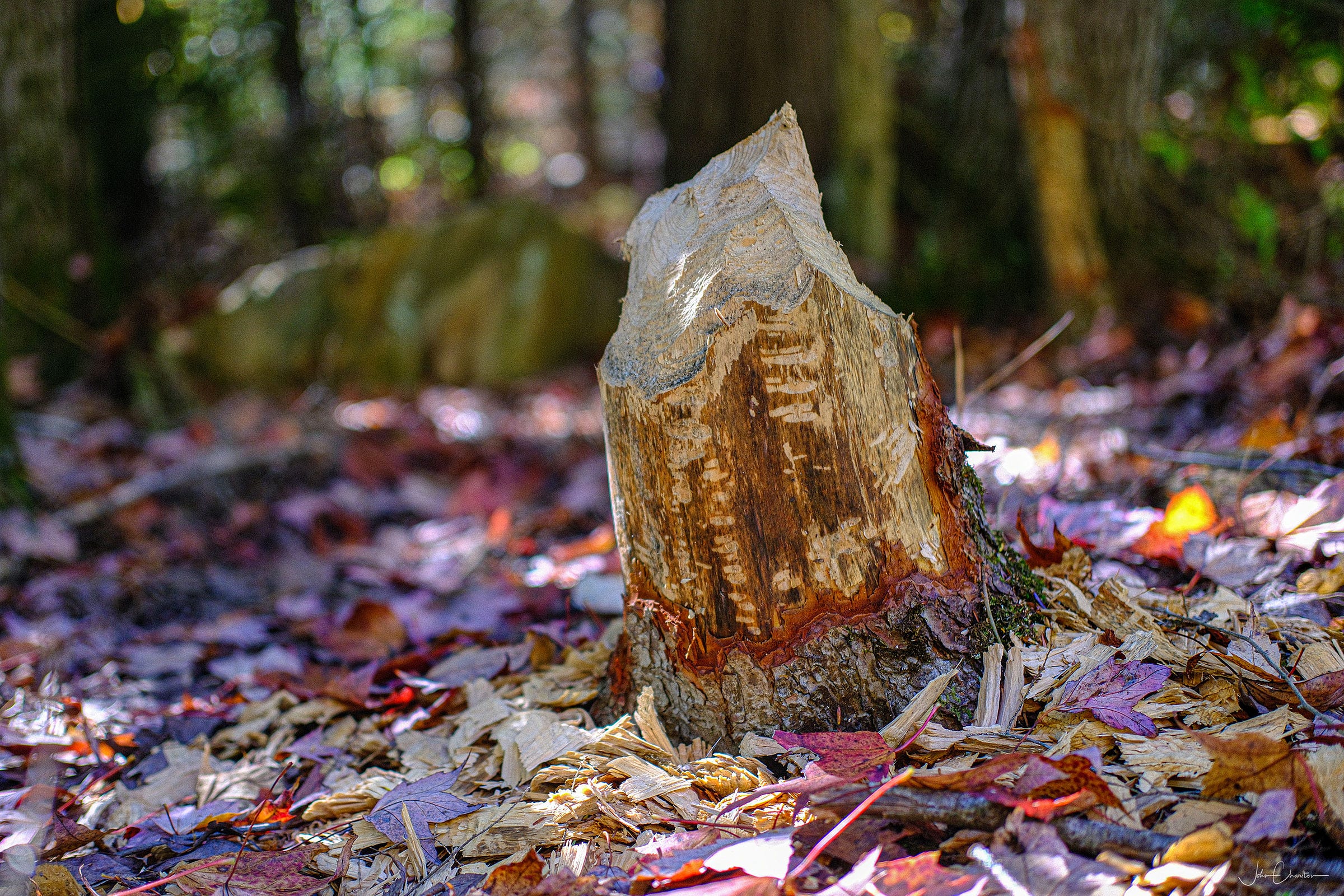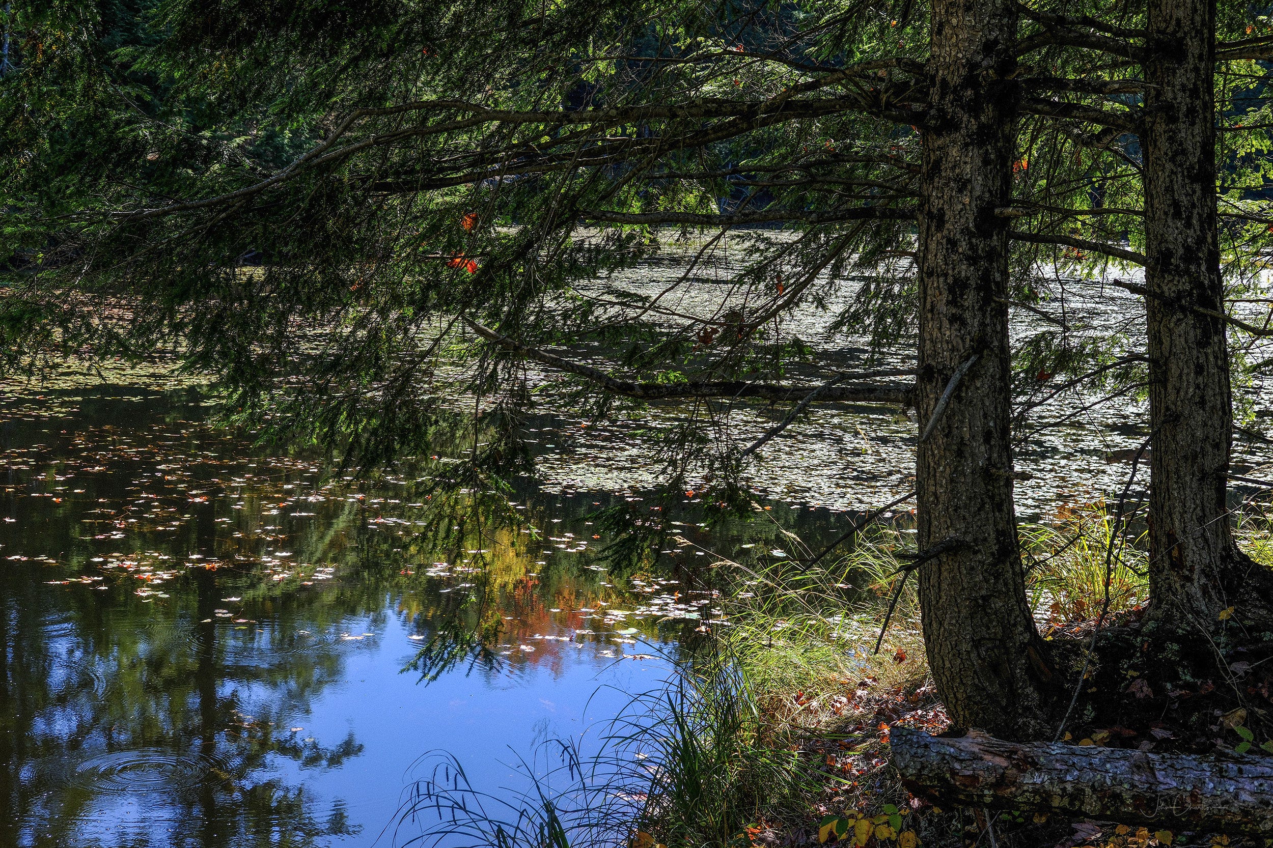 The evidence of a rich ecosystem was everywhere. Aquatic plants floated on the water, and bubbles rose from the muddy bottom. A tree lay on it’s side having been cut and then abandoned by a beaver.
