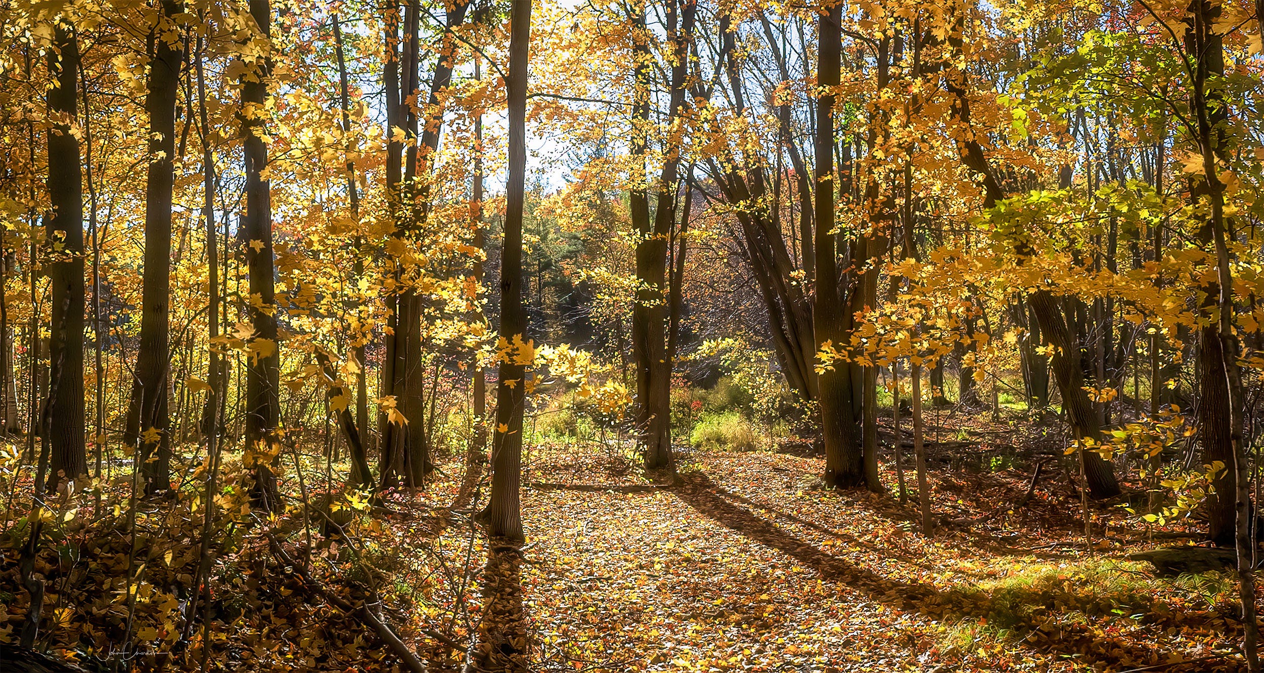 The sun, which had been absent for most of the day, was now shining brightly as it headed into the latter part of the afternoon. Still, there were plenty of clouds in the sky. When the breaks came, the yellow canopy turned on like an overhead light bathing everything in a warm glow. And then as quickly as this amazing light arrived, it would turn off again.